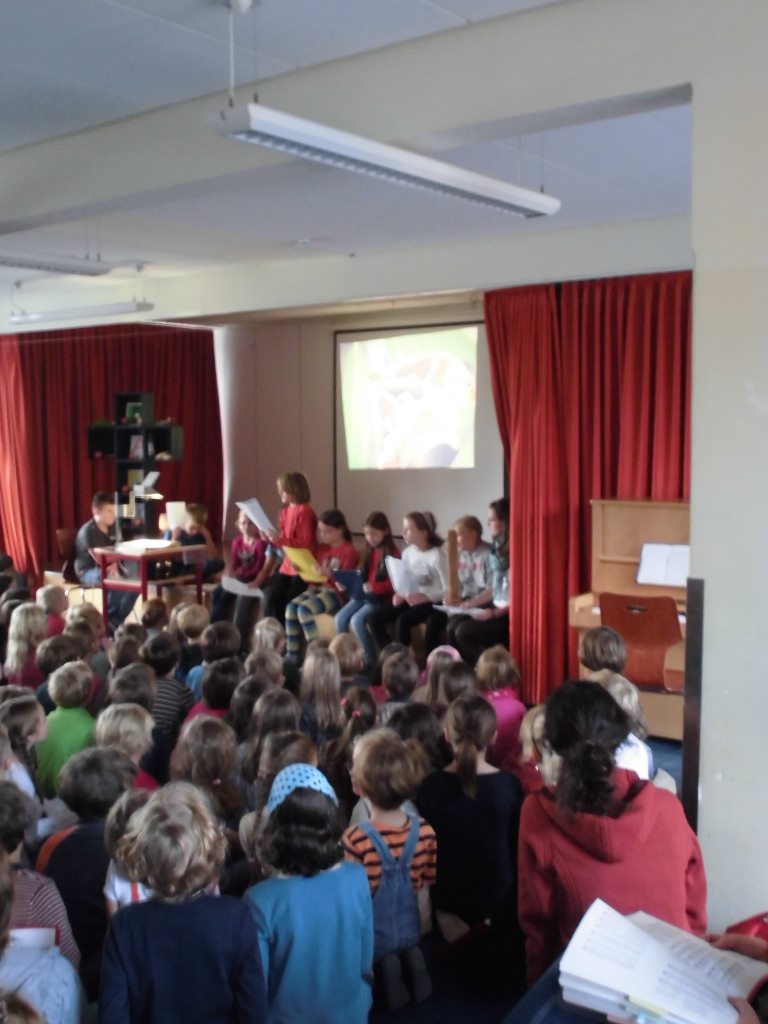 Immer zum Erntedankfest werden die Gaben der Natur zusammen getragen, um Gott dafür zu danken. Heute früh wurden alle Schüler zusammen gerufen, um über eben jenes "Danken" zu hören, zu sehen und zu singen.