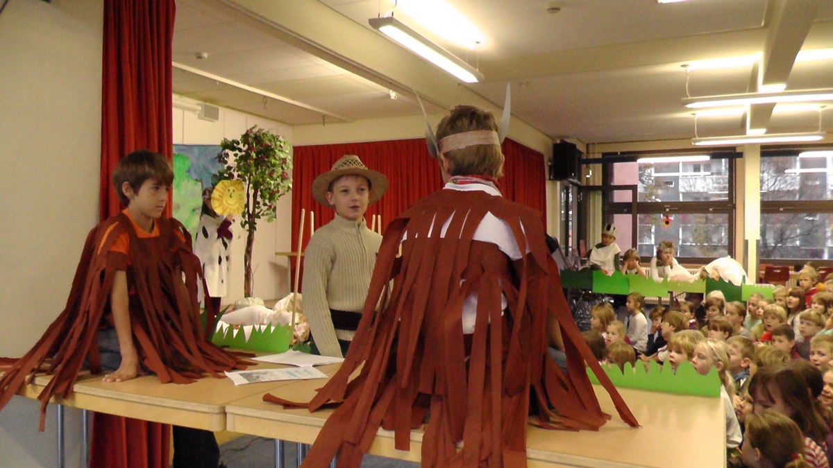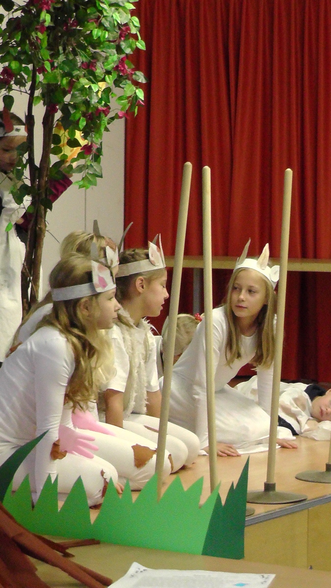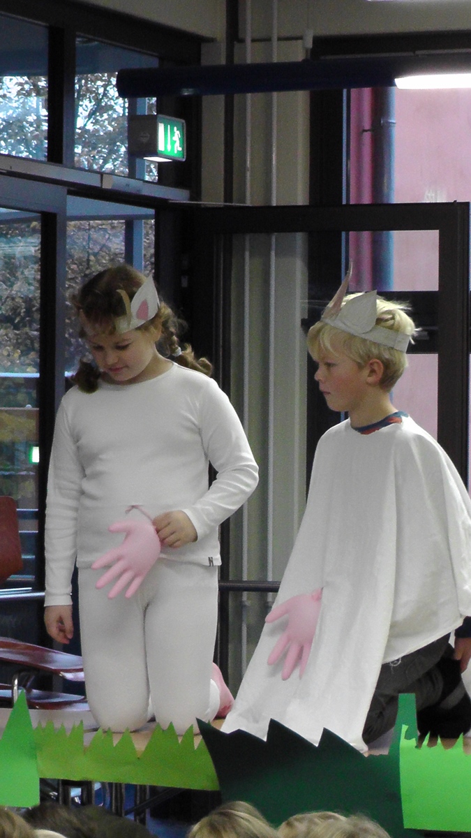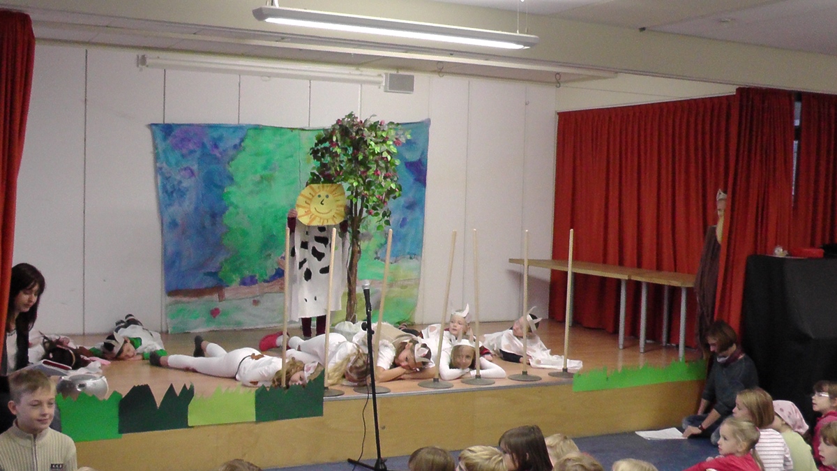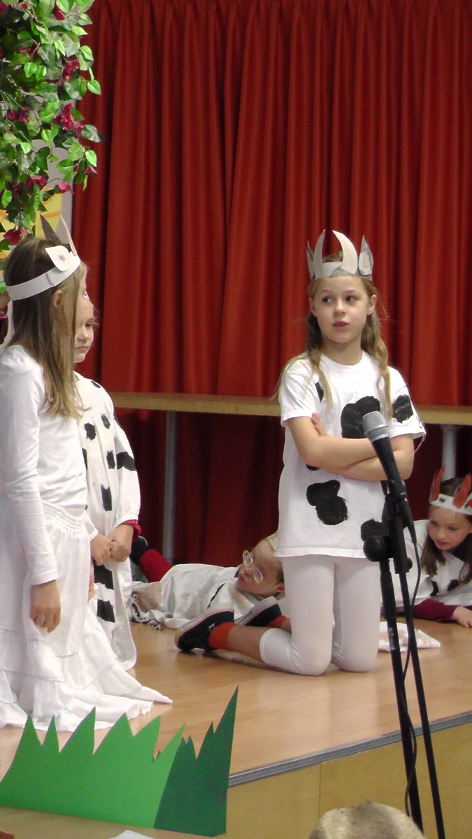 Die Kätzchen-Klasse (ja, nicht die Kuh-Klasse!), bereicherte den Morgenkreis mit einem in der Projektzeit vor den Ferien einstudierten Theaterstück: "Thelma - die weiße Kuh".
