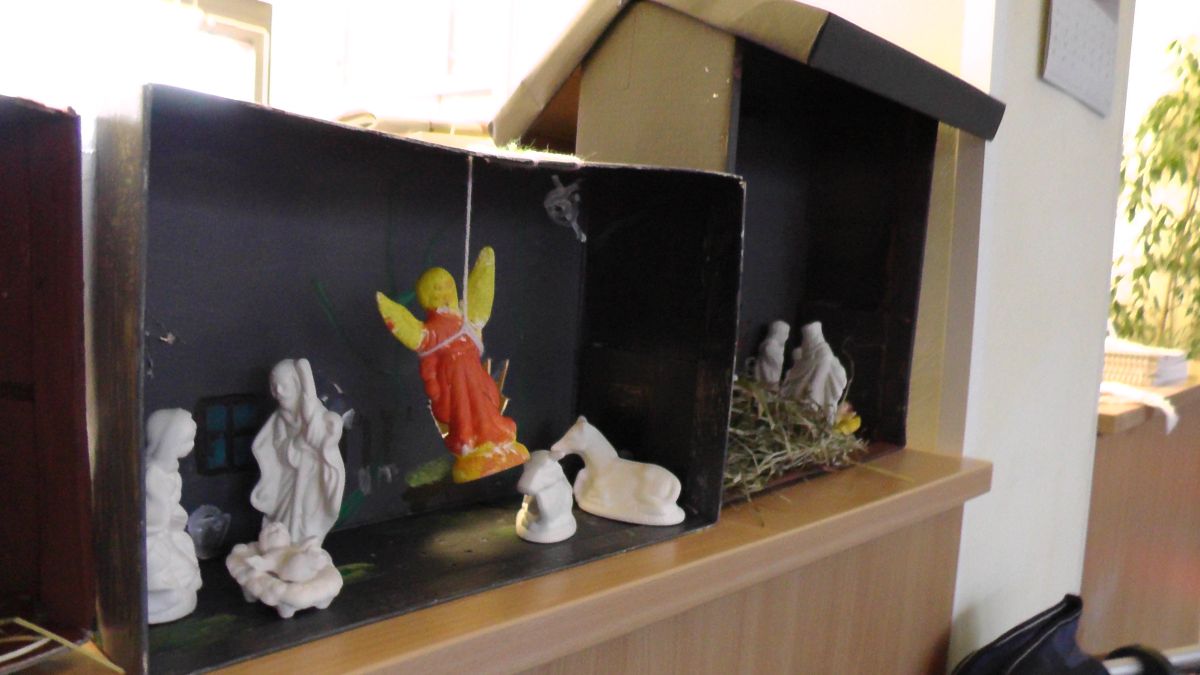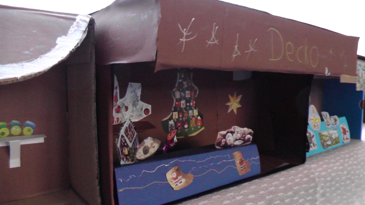 Wer bisher noch nicht auf dem echten Weihnachstmarkt war, konnte diese Woche durch den Miniatur-Weihnachtsmarkt im Erdgeschoss von Haus A schlendern. Kinder haben im Kunstunterricht verschiedenste Stände angefertigt.