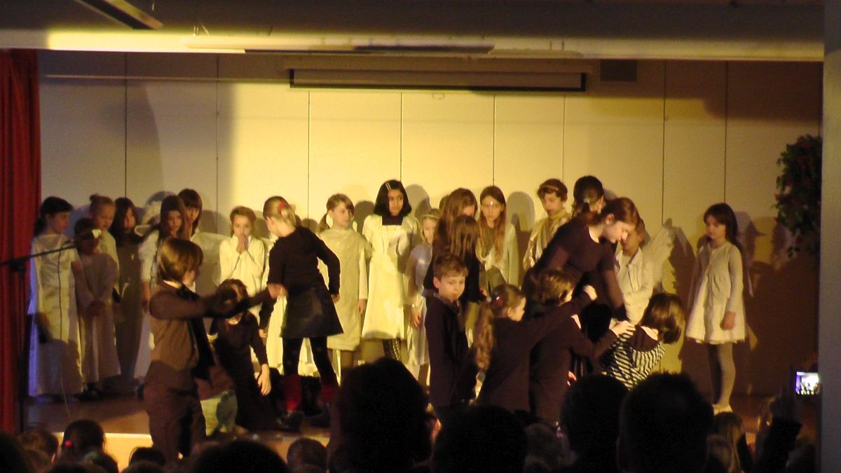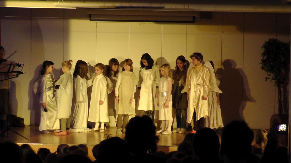 Und wer am letzten Freitag nicht zum Konzert in der Liebfrauenkirche kommen konnte, war vielleicht heute früh in der Aula. Dort wurde das Adventsstück "Die Legende vom allerkleinsten Engel" zweitaufgeführt. Mit vielen schönen Liedern, Orchester, Engeln, Hirten, professionellem Licht und natürlich einer herrlichen Geschichte.