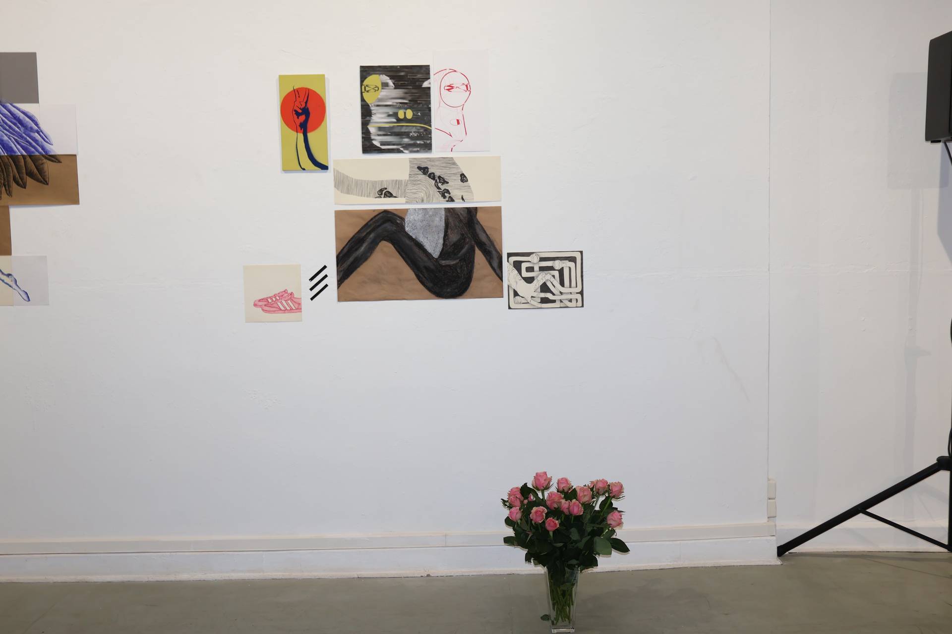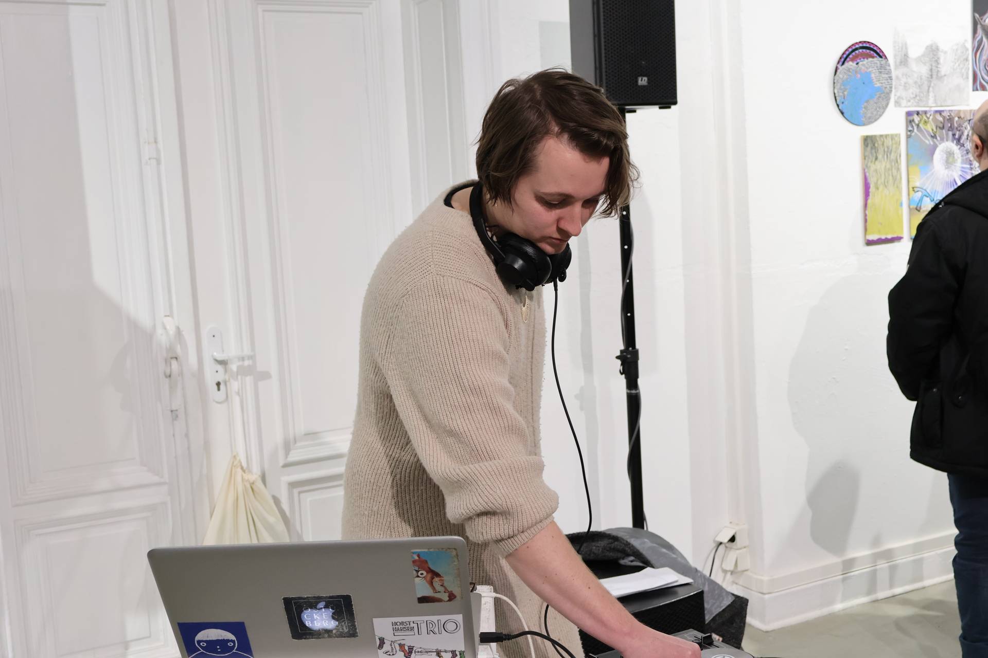 Monte-Musiklehrer Constantin Kleditz unterstützte die Ausstellung musikalisch, teilweise mit eigens komponierten Liedern. Im Vorfeld hatte er sich mit den Schülerinnen und Schülern unterhalten, um seine Musikauswahl der Ausstellung anpassen zu können. Die jungen Kunstschaffenden durften auch eine Musikwunschliste für den Rundgang erstellen.