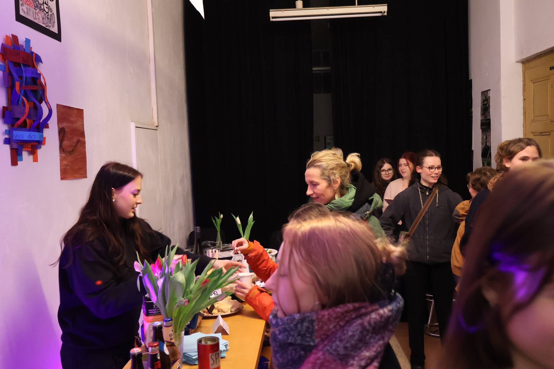 Praktische Unterstützung zur Organisation der Ausstellung gab Galeristin Barbara Röhner. Sie half bei Fragen wie: Wie mache ich Werbung? Wie gestalte ich den Empfangsbereich und die Bar? Welche Nägel und Haken benötige ich für die Hängung der Kunstwerke?
