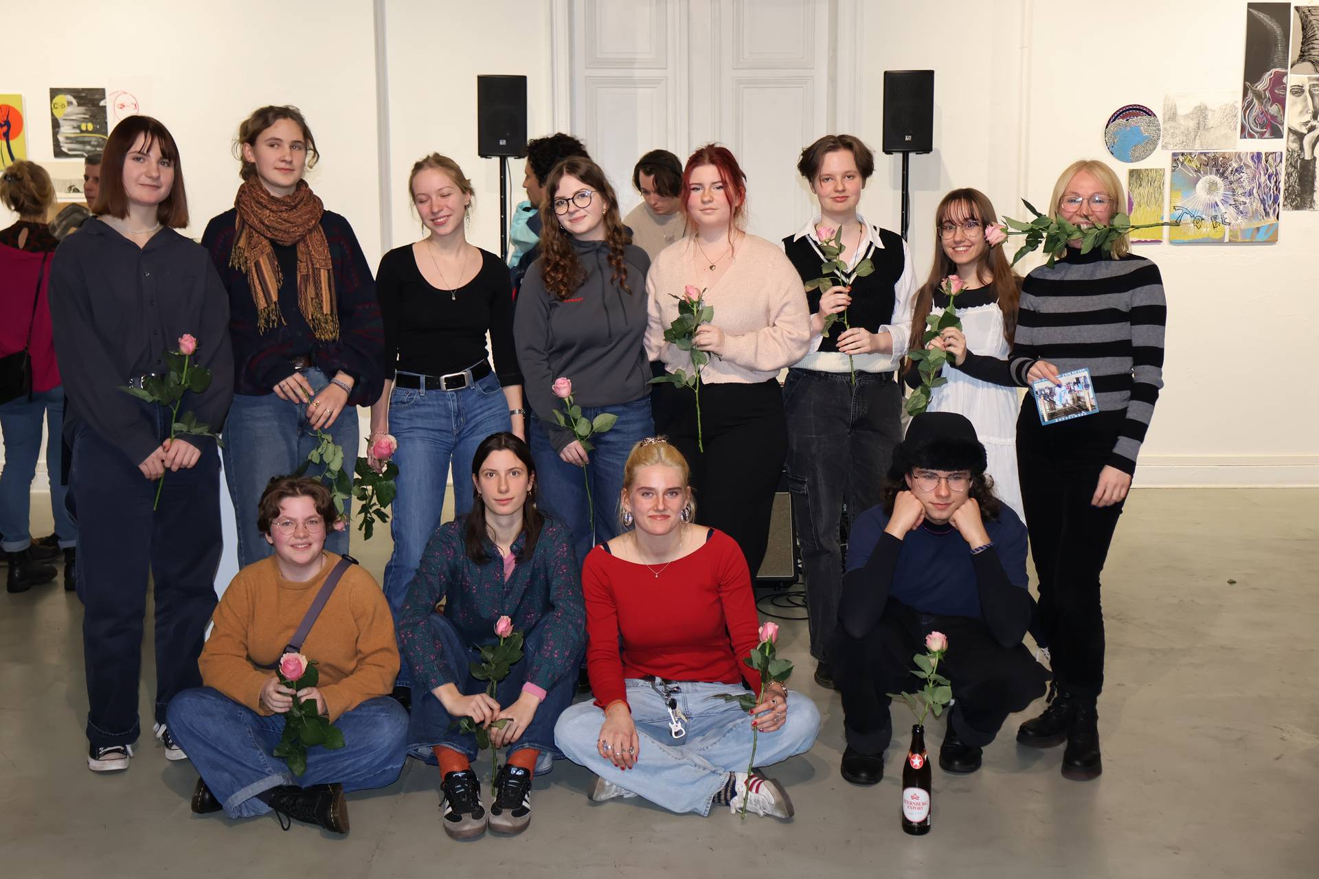 Mit der Ausstellung schlossen sie das erste von vier Kurshalbjahren ab, in dem es auch um die Erweiterung handwerklicher Fähigkeiten und Fertigkeiten sowie die Entwicklung einer eigenen Bildsprache geht. „Diese ureigene Bildsprache steckt sozusagen in jedem schon drin. Es geht eher darum, sie zuzulassen, zu erkennen und zu entwickeln“, erklärte Tutorin Jahny.