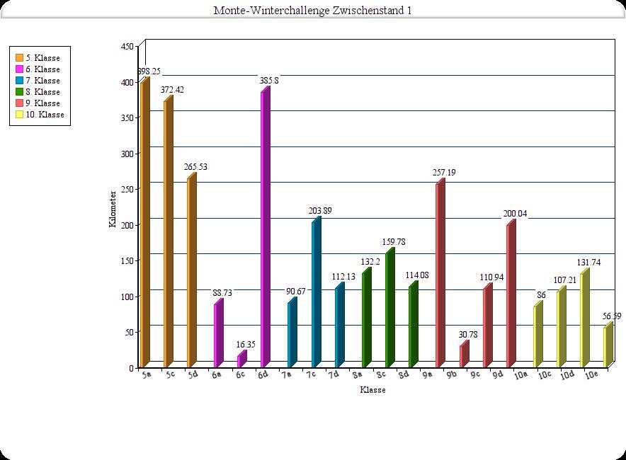 Die Jüngsten haben die Nase vorn! Mit knapp 400 Kilometern setzt sich die 5a an die Spitze.