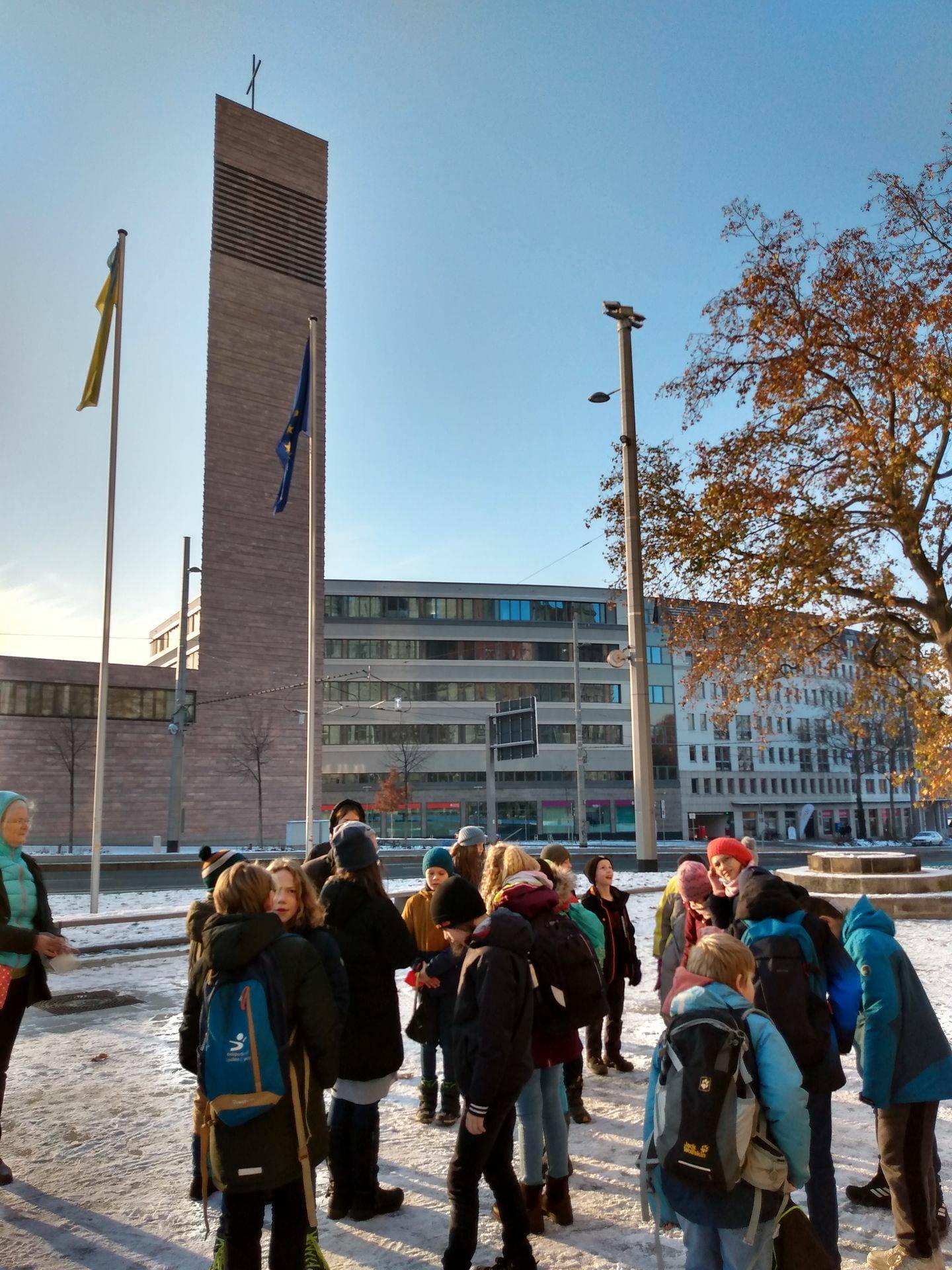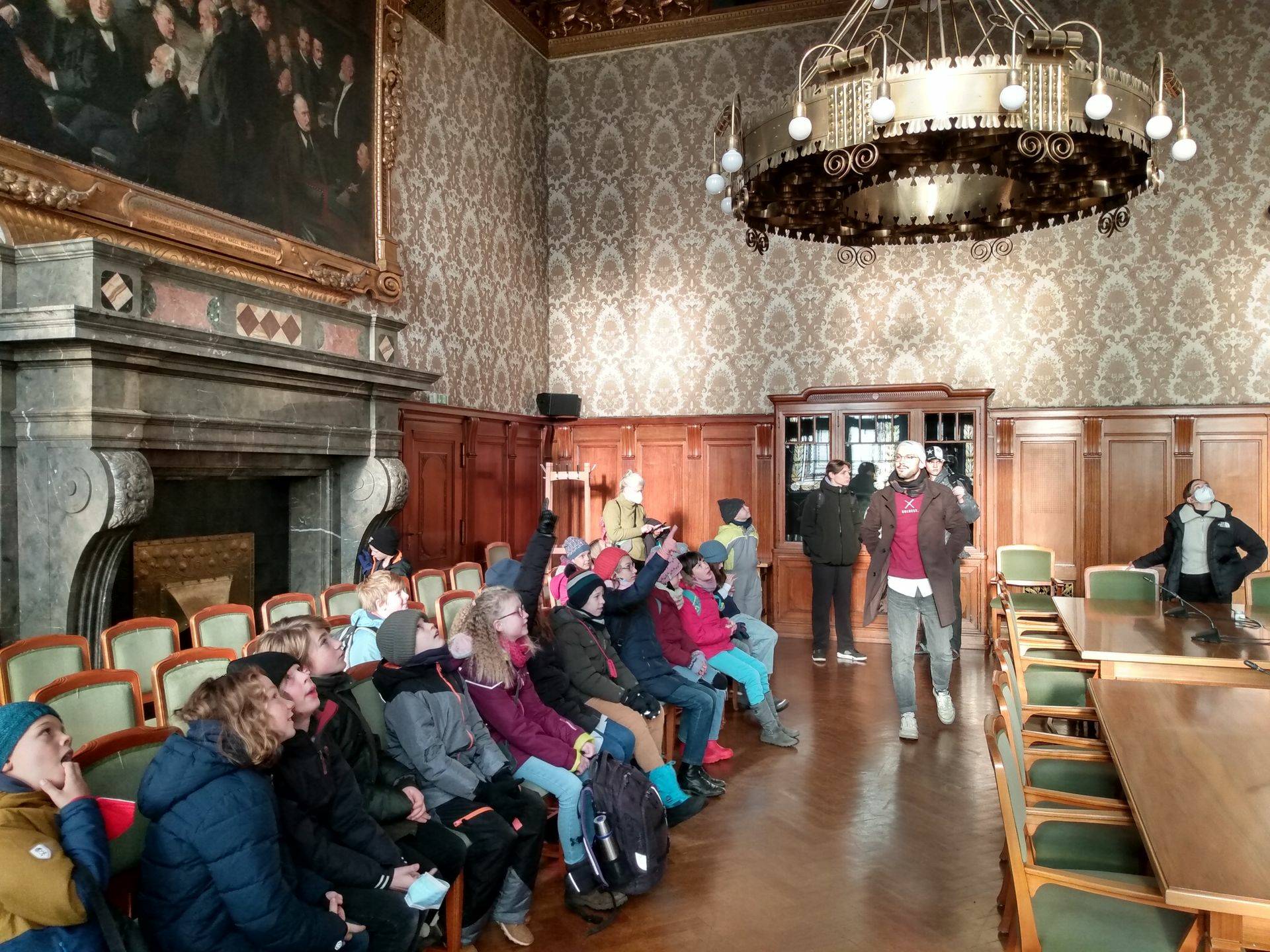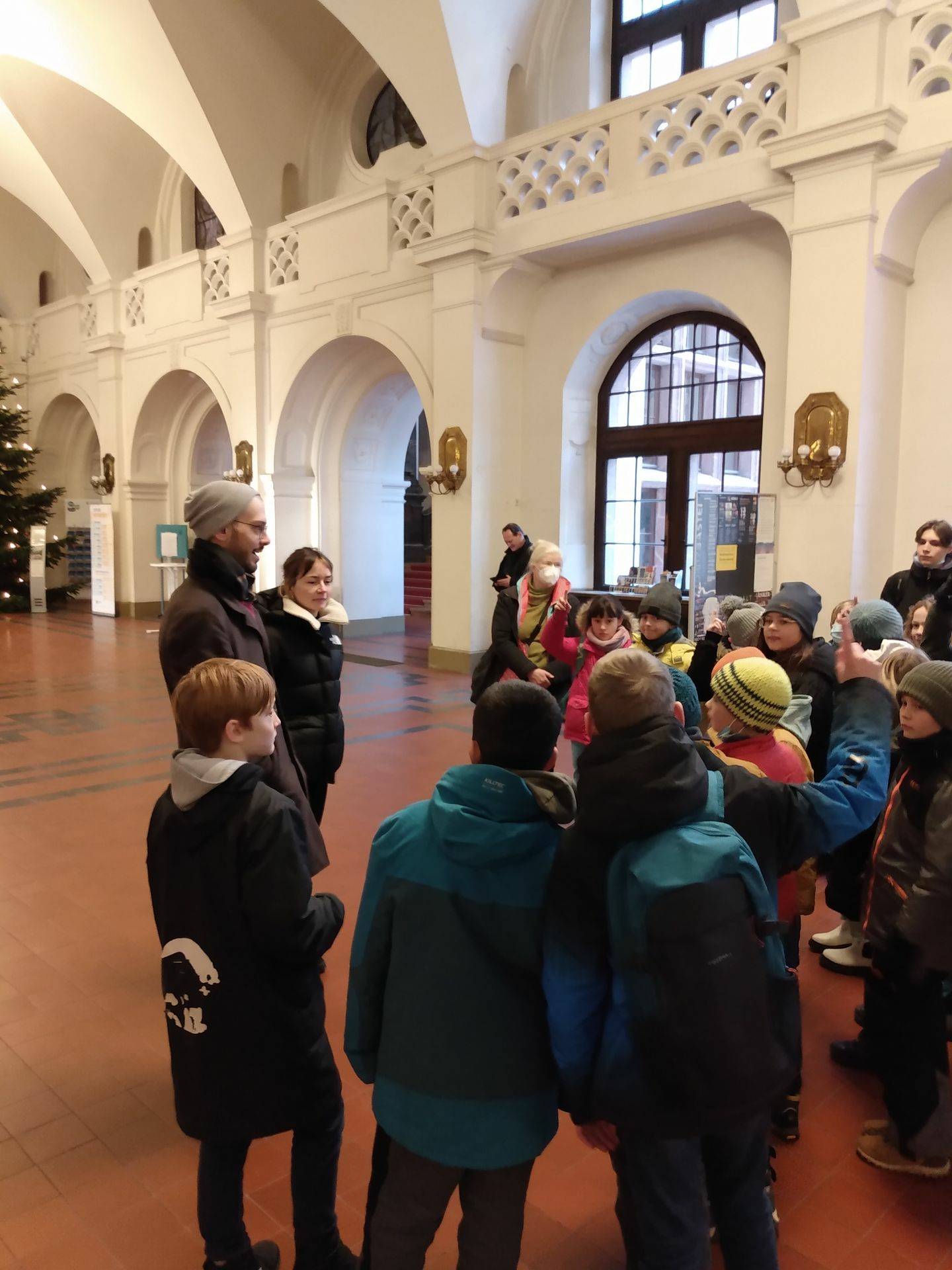 Es waren Illustrationen zu jedem der darin enthaltenen Gesetze gesucht, die Kinder ließen sich dafür etwas einfallen. Viele der Bilder wurden von einer Jury für die entsprechende Broschüre ausgewählt und als Dankeschön dafür gab es eine Führung im neuen Rathaus samt Turmbesteigung. So machten sich 23 Kinder der jetztigen Klassen 4a, 5a, 5c und 5d auf den Weg in die Stadt und durften bei blendendem Wetter die Aussicht genießen und viele andere interessante über das Rathaus erfahren.
