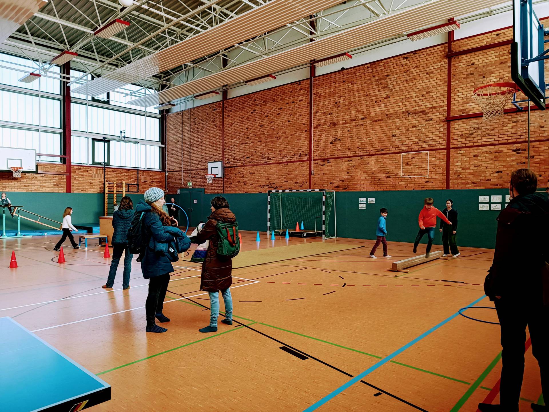 - Bewegungsangebote (auch für keine Geschwister) in der Turnhalle