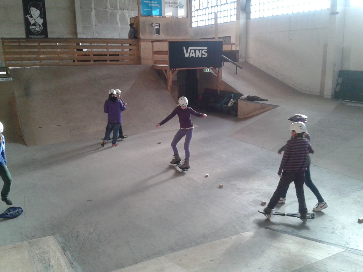 Das Projekt „Waveboard“, unterstützt von Frau Müller, trifft sich jeden Tag um den Anfängern das Waveboarden näher zu bringen oder ihre Fähigkeiten zu erweitern. Bereitwillig zeigen die Fortgeschrittenen den Newcomern Tipps und Tricks, um sich auf den wackeligen Brettern zu halten.