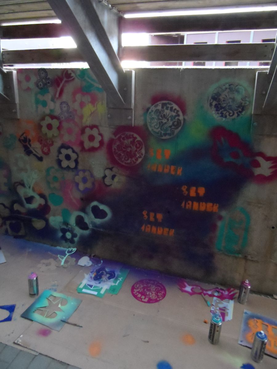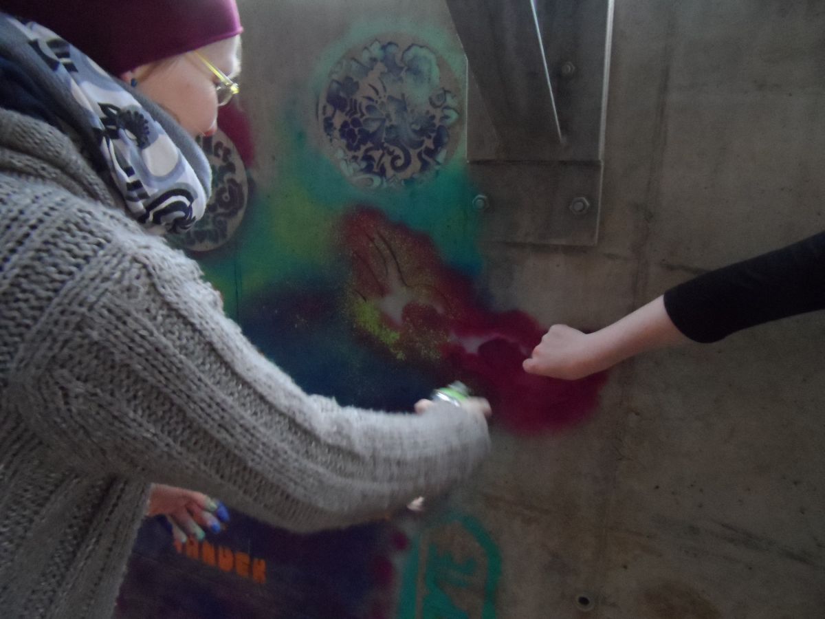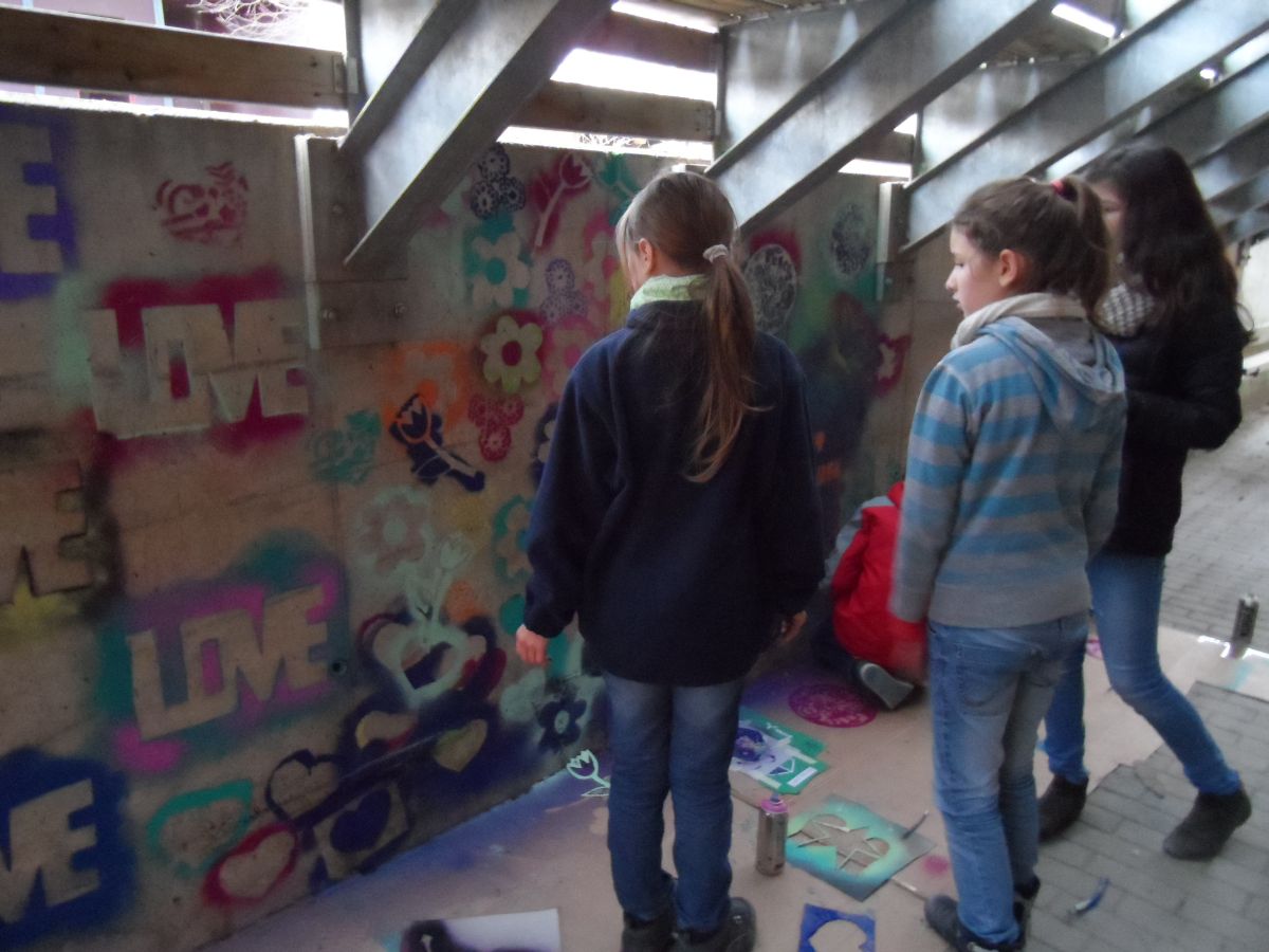Nicht nur wegen der Kunstwerke, die dort entstehen, sondern auch wegen des penetranten Geruchs. Eine Verschönerung ist auch schon in Sicht. Nachdem sie sich am Anfang um kleinere Projekte, wie Plakate oder Leinwänden, gekümmert haben, geht es jetzt an das Große Ganze. Die Anfänger haben viel Neues gelernt und trauen sich jetzt an die erste Herausforderung. Kreativität spielt dabei auch eine entscheidende Rolle.