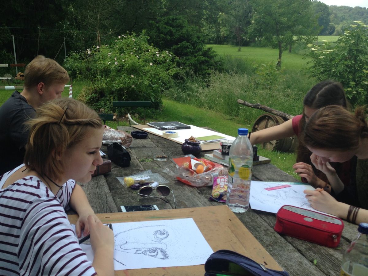Im Rahmen des Kunst–LK–Unterrichts der Schuljahre 2014-16 verbrachten Lehrer und Schüler zwei gestalterisch höchst intensive Arbeitswochenenden in der Schaddelmühle bei Grimma und zeigten am letzten Wochenende eine Auswahl an farbgrafischen und collagierten Arbeiten. Vervollkommnung der Kunstkompetenz an unterschiedlichsten, aber stets inspirierenden Orten hieß da das Ziel! UND „Wir haben es erreicht“. Konfrontation mit dem „echten“ Kunst-Leben. „Unsere erste eigene Ausstellung mit allen Begleiterscheinungen: Rahmung, Hängung, Vernissage, Publikum, Applaus, Umtrunk, regionale Presseresonanz, Interviews, Finissage, Publikum, Applaus!“... „ Nun ja, leben können wir davon noch nicht ganz, aber fast. Studieren wir also zuerst!“