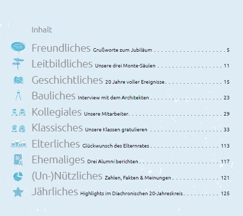 Die FESTSCHRIFT! Für aktuell nur 13,50 Euro kann man sie in den Sekretariaten erwerben und sich freuen auf: