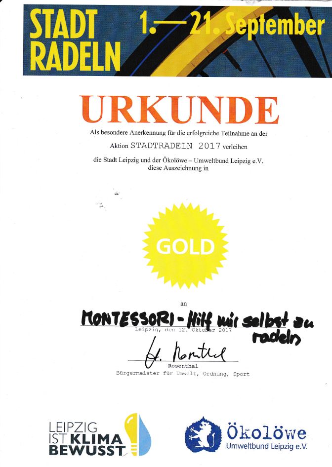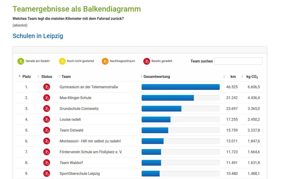 Mit 13.011 km hat das Schulzentrums-Team ("Montessori - Hilf mir selbst zu radeln") den 16.Platz von insgesamt 362 Teams in Leipzig erreicht.