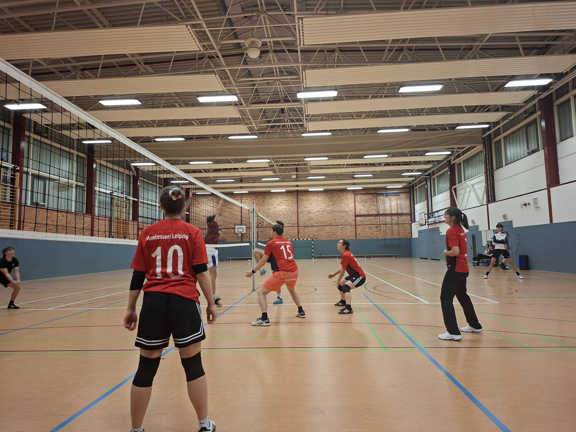 In diesem Jahr gab es sogar besonders viele junge Interessenten an dem technisch anspruchsvollen Rückschlagspiel zu sechst. So gab es einen Kurs in Klasse 12 der von Frau Korn und Herrn Langrzik in der Kunst des Baggerns und Pritschens unterwiesen wurden und gleich zwei neue Kurse in Klasse 11 bei Frau Kleinschmidt und Frau Pilz-Milke, die Aufschläge und Aufstellungen einübten. Die circa 20 Schülerinnen und Schüler in jedem Kurs hatten also seit August die Möglichkeit alle nötigen Techniken und Taktiken zu erlernen und sich auf das Turnier vorzubereiten.