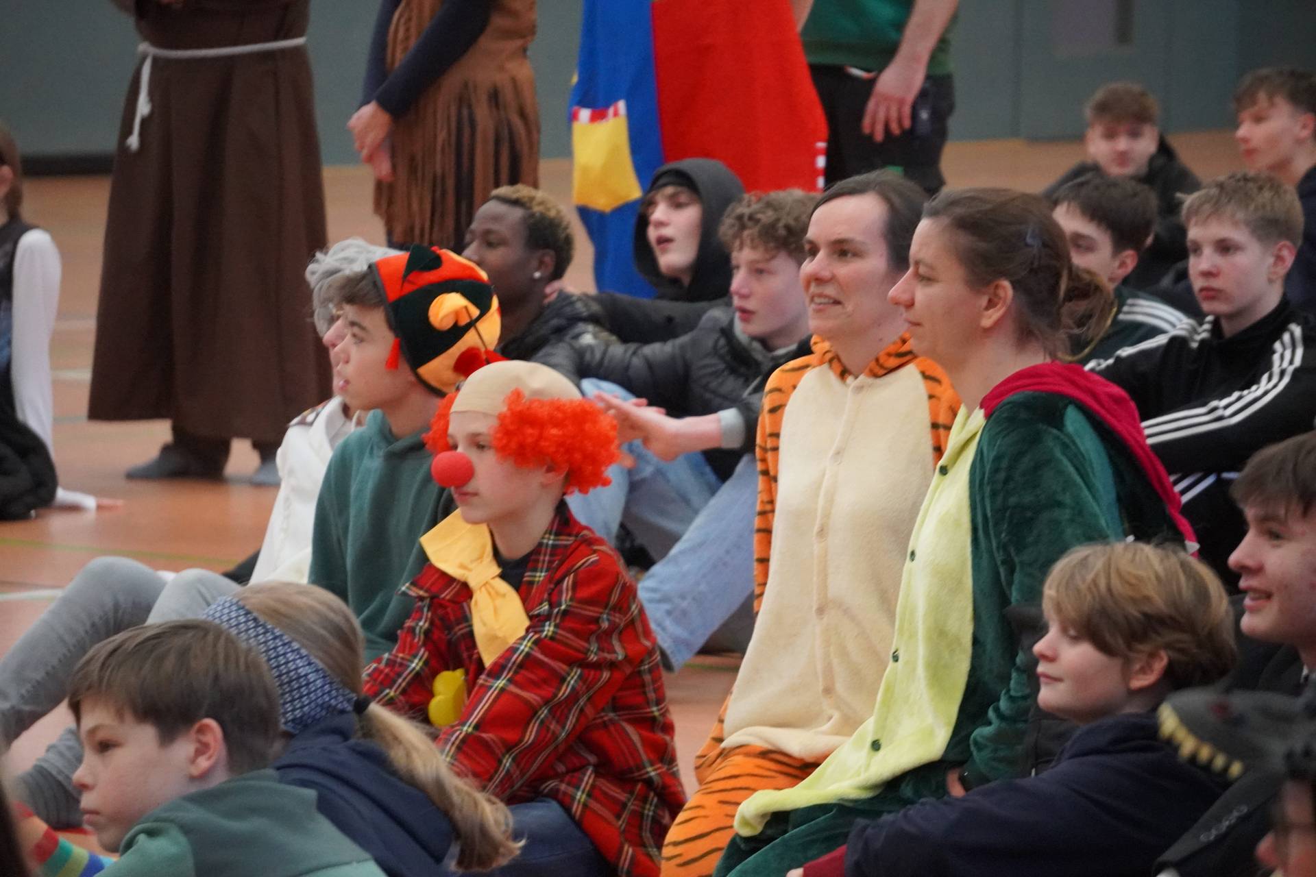 Am 29. Januar verwandelte sich die gesamte Schule in der 4. und 5. Stunde in ein buntes, lautes und wildes Fantasieland. Die Schülerschaft hatte sich im Rahmen der vergangenen Schulversammlung für eine gemeinsame Faschingsfeier entschieden. Voller Aufregung wurde sich in den Tagen davor ausgetauscht und gegenseitig inspiriert. Sätze wie „Und als was gehst du?“, „Hast du ne Idee?“ oder „Kannst du mir was leihen?“ waren nicht nur unter den Schülerinnen und Schülern, sondern auch im Lehrerinnenzimmer zu hören.