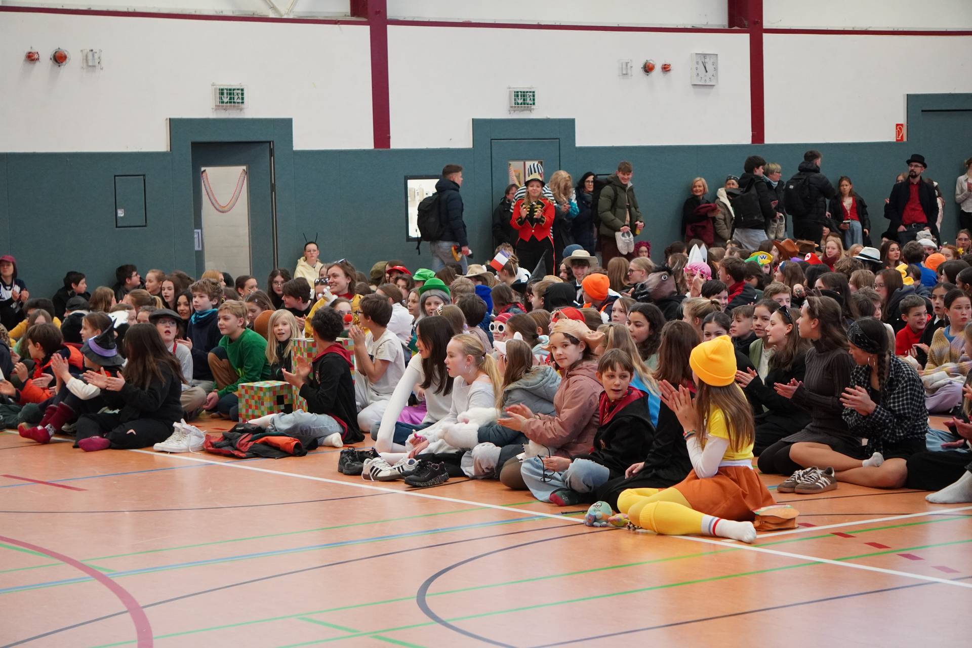 Der Faschingstag selbst startete als „normaler“ Schultag. Nur, dass die Klassenräume voller Kinder in Kostümen waren, wodurch die Lernatmosphäre etwas erschwert wurde. Nach dem offiziellen, gemeinschaftlichen Beginn in der Turnhalle konnten sich die Schülerinnen und Schüler frei durch die Schule bewegen und die selbst organisierten Stände und Aktionen besuchen: Disco und Fotobooth, Schminken und Dosenwerfen, Wer-bin-ich? als Lehrer-Edition oder Bierpong ohne Bier – jede Klasse hatte sich etwas Besonderes ausgedacht.
