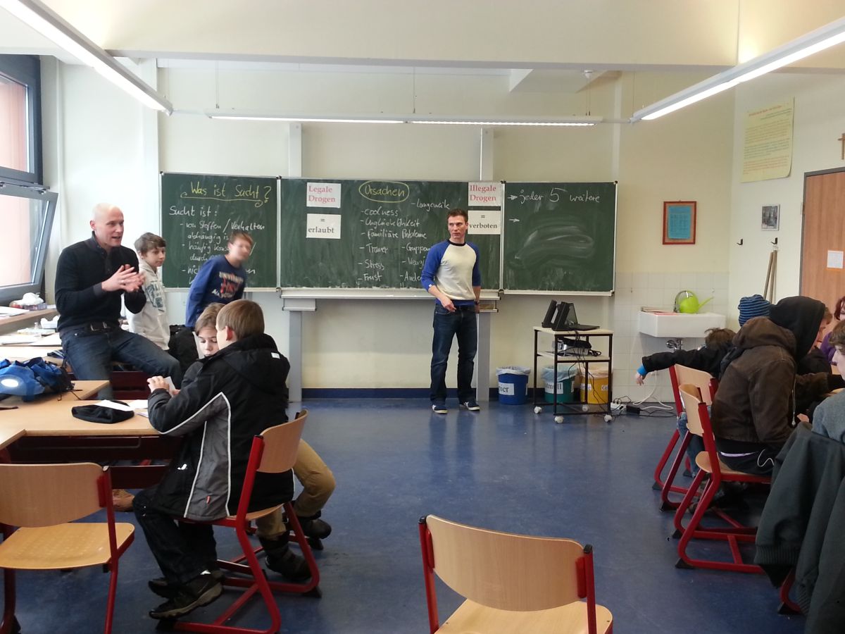 Der Workshop soll den Schülern dabei helfen, nicht süchtig zu werden und ihr Leben mit Freude zu meistern. Mit Übungen und spielen soll gezeigt werden, was passieren könnte, wenn man abhängig wird. Mit Hilfe von Gegenständen werden die verschiedensten Süchte besprochen.