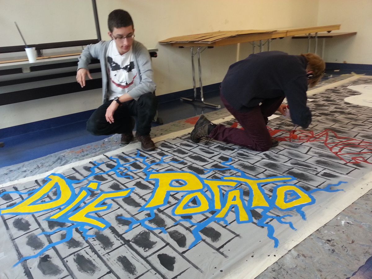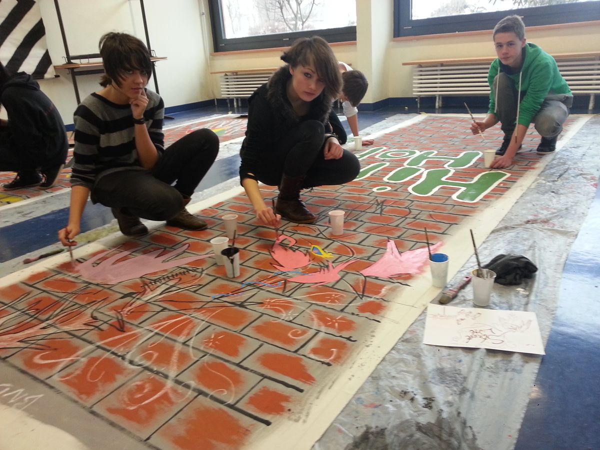 Die Jugendlichen von Klasse 8-10 verbinden Kunst und Musik. Sie stellen in diesem Workshop die Hintergrundbilder für die Musicalaufführung her.