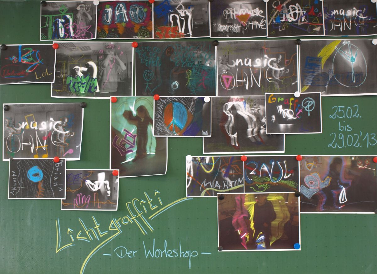Beweis dafür: Spektakuläre und immer präziesere Fotos. Es entstanden coole Lichtgraffiti zu Situationen, in denen sich die Schüler stark fühlen. So dichtete beispielsweise eine Schülergruppe einige Verse darüber, wie Musik sie in unangenehmen Situationen stark machen kann. Ihren Reim illustrierten sie mit passenden Kunstwerk. Starke Lichtgraffiti!
