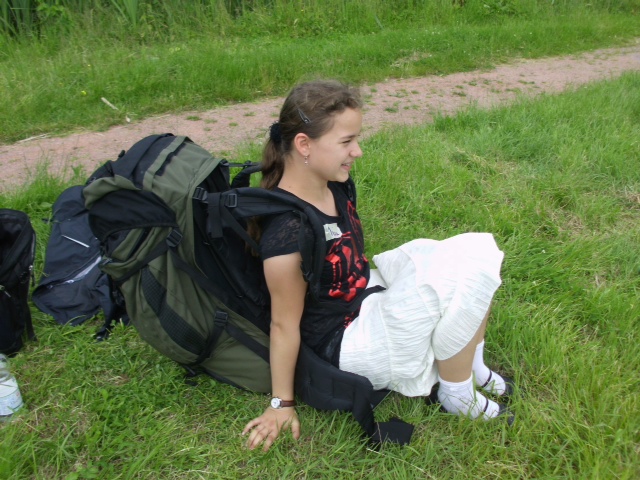 FÜHLEN: Fühlen wie schwer eine Pilgertasche ist konnte wir an einer Station live erleben, indem wir mit dem vollen Rucksack Kniebeugen machten. Danach sortierten wir aus was man wirklich braucht und was nicht. Wobei da bei manchen Gruppen lustige Diskussionen entstanden ob z.B. die Zahnbürste für 2 Wochen wandern wirklich mit muss.... (nur zur Info: JA)