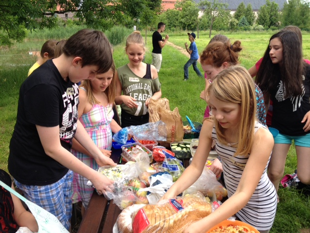 SCHMECKEN: Für unsere Mittagspause brachten alle etwas zum Picknicken mit. Was dazu führte dass wir übermengen an leckeren Essen hatten - von Marzipankuchen über Gummibärchen bis Kartoffelsalat - Somit luden wir noch die Band ein mit uns zu essen.